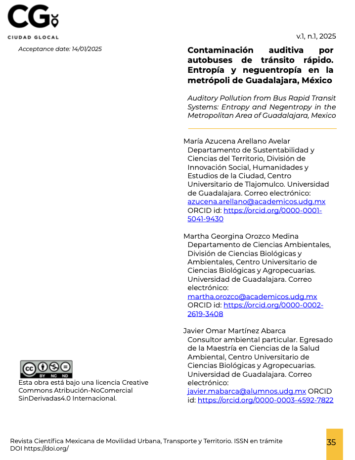 Contaminación auditiva por autobuses de tránsito rápido. Entropía y neguentropía en la metrópoli de Guadalajara, México