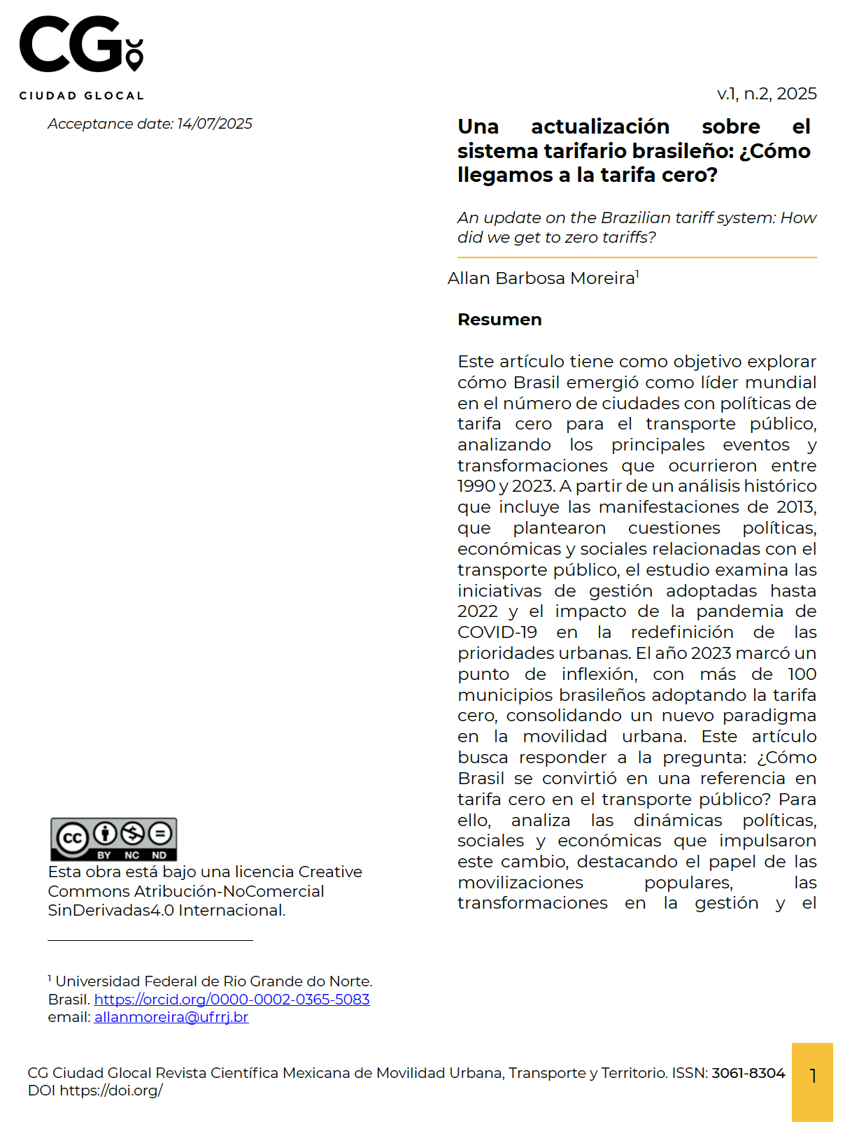 Vol. 1 Núm. 2 (2025): CG Ciudad Glocal Revista Científica Mexicana de Movilidad Urbana, Transporte y Territorio